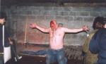Het licht gaat uit en de “spotlights” gaan heel langzaam aan. Op de scène zien we drie naakte mensen. Een man duwt een plank op wieltjes in het rond. Almaar sneller en sneller. De vrouw staat op uit het bad en dan beginnen ze alledrie hun kleren aan te trekken. De ene man bedient de vrouw en man twee met rode wijn en geleidelijk aan gaan de kleren terug uit. En dit eindigt met een half geklede vrouw op een stoel bovenop de plank met een rode vlag met een swastika naast haar (Marlène Dietrich, iemand ?). En zo krijgen we het ene beeld na het andere voorgeschoteld, begeleid door hele bevreemdende muziek. En het ene beeld is al mooier of shockerender dan het andere. En na anderhalf uur verlaat je de zaal en je vraagt je terecht af : “WAwaDA ?”. Welnu, dat was “Tourniquet”, een stuk van Abattoir Fermé, ontsproten uit het brein van een zekere Stef Lernous. En volgens De Standaard één van de beste stukken van vorig jaar !